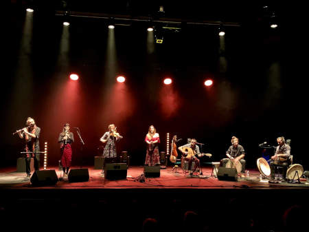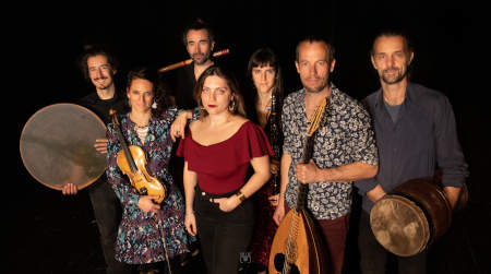 DISTRIBUTION Paul Oliver : saz, laouto, mondole, chant et direction artistique Clémence Gabrielidis : chant Christophe Montet : daf, tombak, chant Raphaëlle Yaffee : violon, chant Damien Fadat : bansuri, chant Lucie Gibaux : clarinette, chant Samuel Wornom : darbuka, doholla, daf, chant |