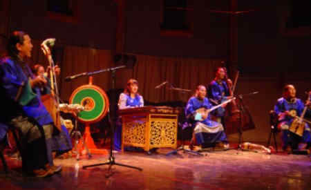Aujourd’hui les sept musiciens mongols se remarquent par la virtuosité de leur musique. Celle-ci prend la forme d’acrobaties vocales : le Khöömie, émission simultanée d’un bourdon et de sons harmoniques, le khailakh récitatif, ou encore le mélodieux Duulakh. Elle se caractérise également par des recherches sur le langage sonore de la vielle cheval Morin khuur, de la cithare trapézoïdale Yootchin et du luth à deux cordes Tobshuur. En aucun cas EGSCHIGLEN n’est poussé par l’urgence de la modernité, il évite toute hybridation mondialiste. Le groupe joue avec les transpositions mélodiques et développe une musique lumineuse mêlant fredons étranges, muettes gutturales et digressions pentatoniques. ![]() La musique et les danses d'EGSCHIGLEN sont fortement marquées par l’univers poétique des nomades mongoles et les traditions chamanes. Elles nous transmettent l'harmonie d’un peuple vivant en accord avec la nature et ses cinq bijoux « les chevaux, les chameaux, le bétail, les moutons et les chèvres. » Et si les sonorités mongoles semblent étranges et mystérieuses pour des oreilles occidentales. En particulier les chants Khöömie… Comment imaginer qu'une voix peut produire de telles aigues et graves en même temps ? EGSCHIGLEN exprime des sentiments humains de base : amour, douleur et gratitude. Sa musique nous est donc aussi familière. Elle nous rappelle qu’au delà de toutes les différences culturelles, certains éléments sont communs à l’existence humaine. ![]() |