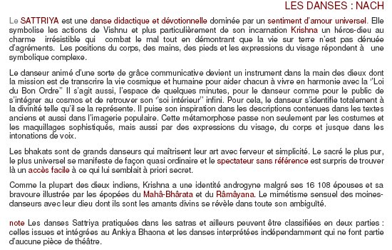 Le Sattriya est né au 15ème siècle, initié par le maître Sankaradeva et inspiré du Natyasastra, grand livre de danse-drame-musique datant de 200 ans après Jésus Christ, se pratique dans les Satras, monastères uniques dans leur genre. L’institution des Satras est le seul ordre monastique existant dans la religion hindoue et pratique la bakhti voie de l’amour dévotionnel.